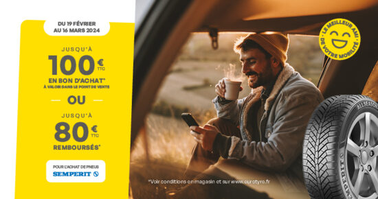 Du 12 novembre au 7 décembre 2024, jusqu’à 100€ en bon d’achat* à valoir dans votre point de vente Eurotyre […]